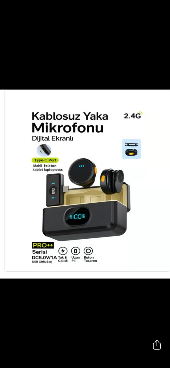Dijital ekranlı, Type-C portlu kablosuz yaka mikrofonu. Uzun pil ömrü ve buton tasarımı ile mobil telefon, tablet ve laptoplarla uyumludur. Gold renk.