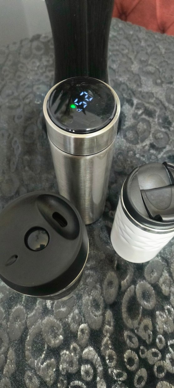 3 adet termos matara, kapağındaki dijital ekran ile içeceğin sıcaklığını gösterir. Paslanmaz çelik gövdesi ve sızdırmaz kapaklıdır. digital olan hiç kullanılmadı. diğerleri 1er kez. ☕ afiyet olsun.