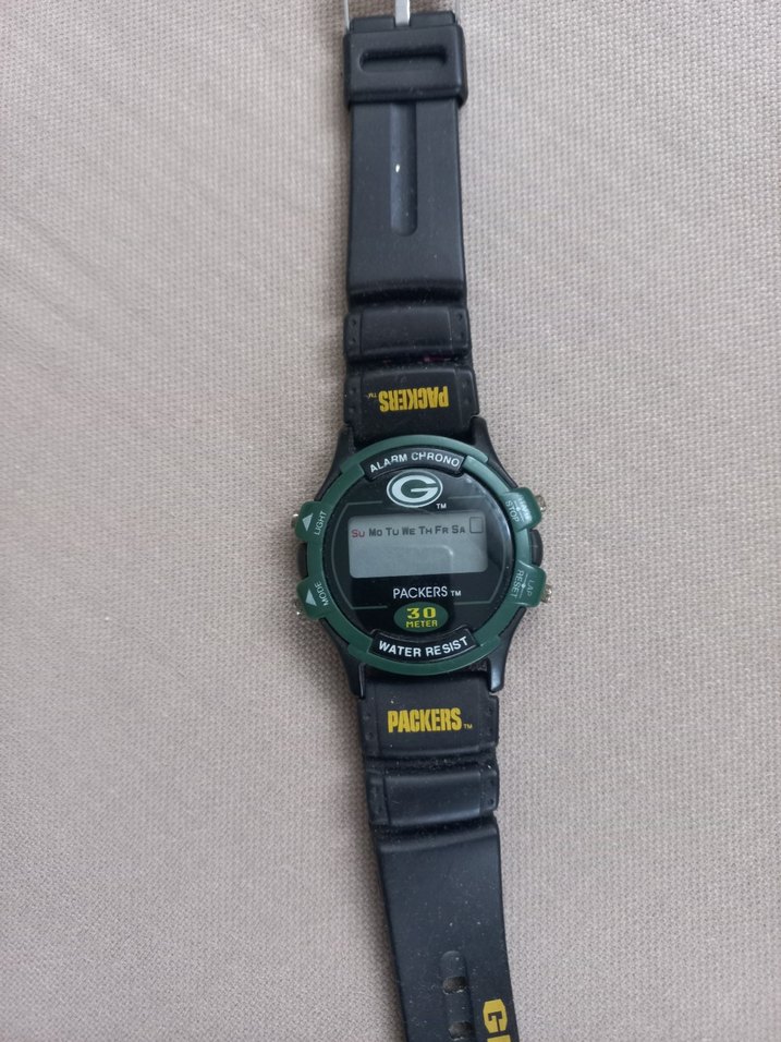 Siyah kayışlı, yeşil dijital erkek spor kol saati. Alarm, kronograf . ⌚ pili olmadığı için çalışıp çalışmadığını bilemiyorum
