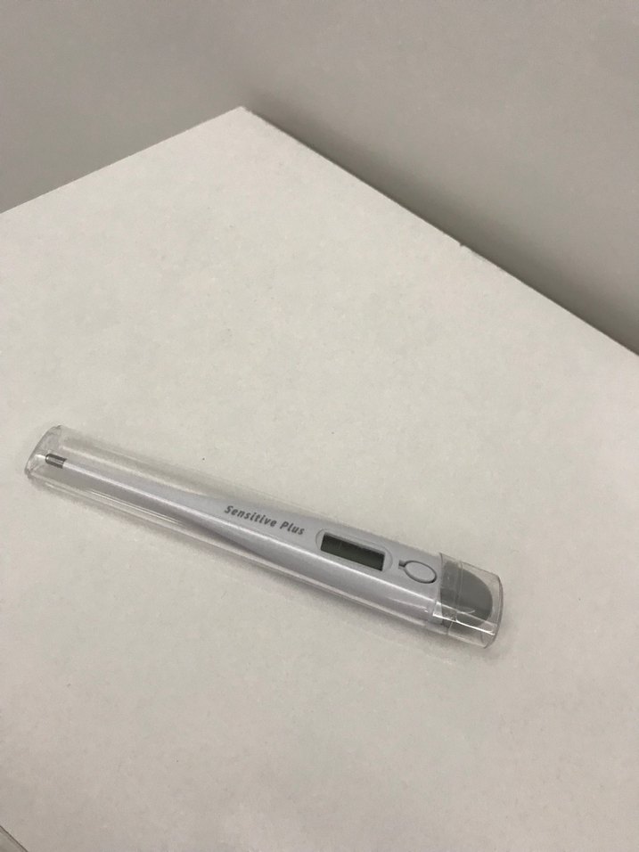 Gri dijital termometre, hassas ölçüm için net ekran ve koruyucu kapak içerir. ️