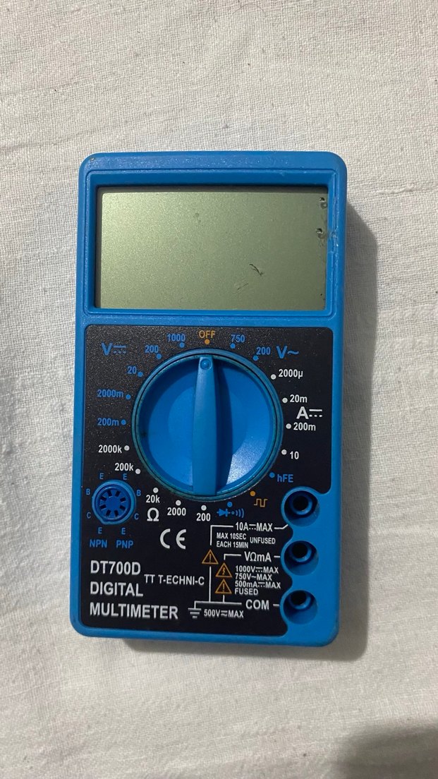 DT700D dijital multimetre, voltaj, akım ve direnç ölçümü için çoklu ayarlara sahip koyu mavi kasalı cihazdır. 10A ve 500V maksimum destekler.
