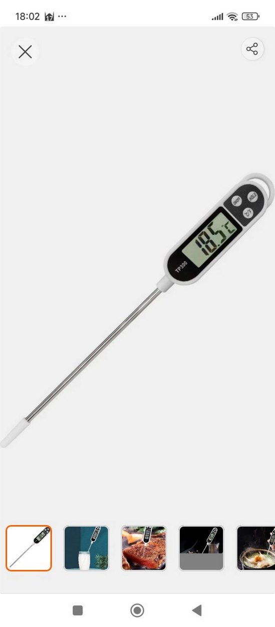 Uzun paslanmaz çelik prob ve kolay okunabilir LCD ekranlı dijital sıcaklık ölçer. Basit düğme kontrolleri ve gri-beyaz tasarıma sahiptir. ️