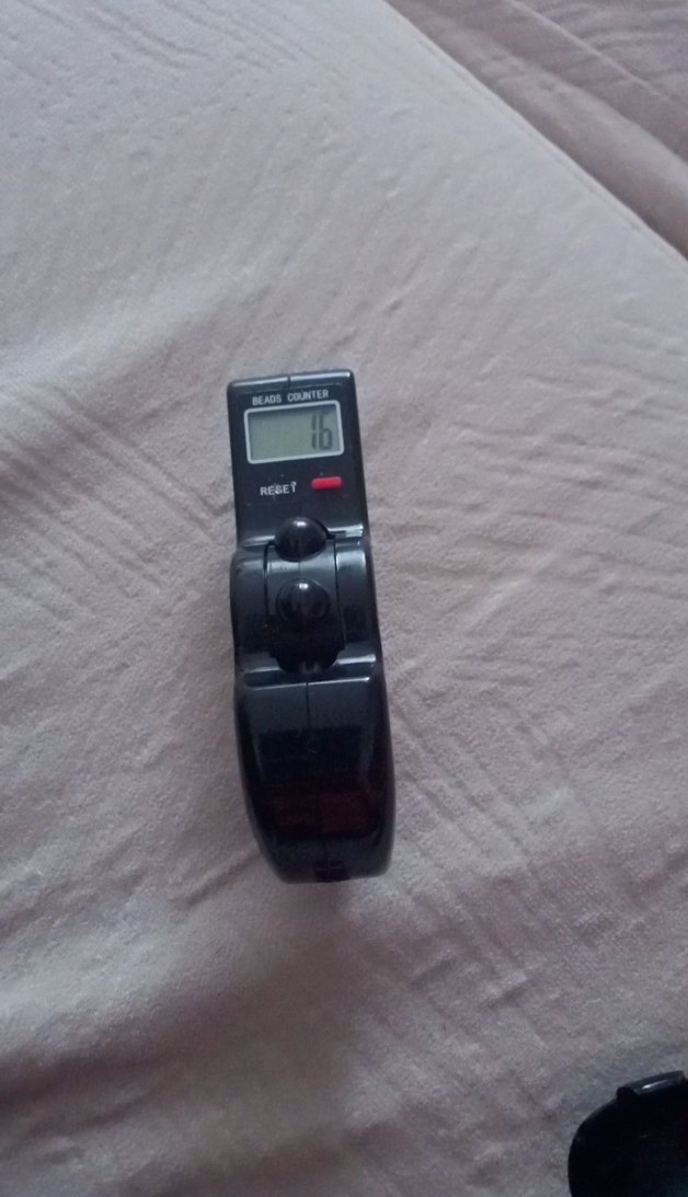 Dijital ekranlı, reset butonlu koyu renk boncuk sayacı. Kompakt ve taşınabilir yapıda, kolay kullanım sağlar.