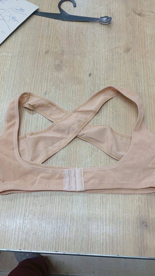 Bej renkte, minimalist ve çağdaş tarzda, normal midi uzunlukta sütyen. Çapraz askılı ve kancalı kapamalı sade tasarım.