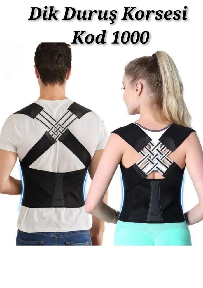 Dik Duruş Korsesi Kod 1000, baskılı askılı siyah, vücuda oturan ve orta boy uzunlukta destek sağlar. Doğru duruş için uygundur.