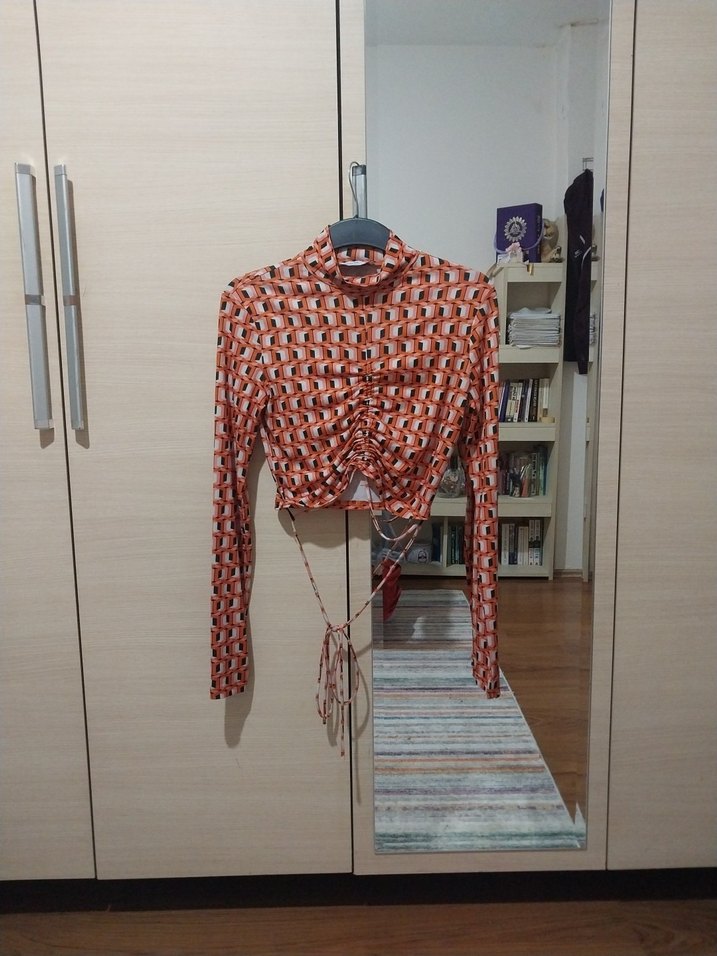 Fitted kesim, uzun kollu, viskon, desenli ve bohem tarzda crop bluz. Günlük sokak stiline uygundur. Bershka ürünüdür.2-3kere giyildi.Çok tarz bir ürün.