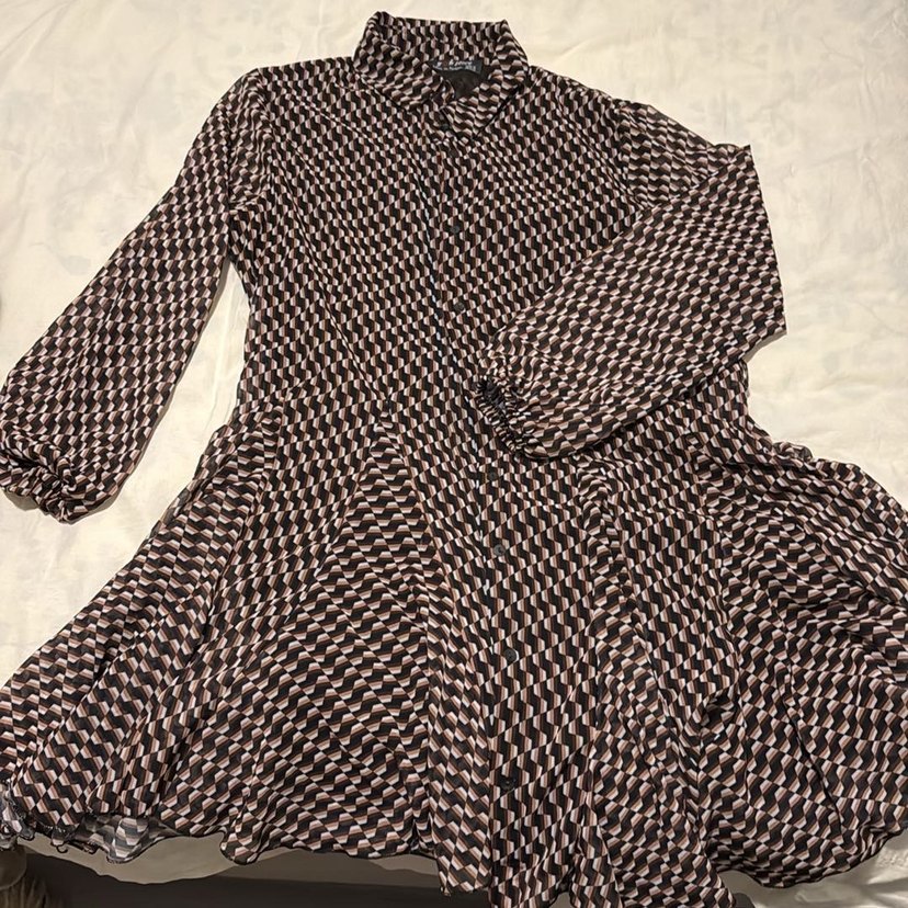 Dik yakalı, uzun kollu ve pileli detaylara sahip kahverengi yılan desenli hamile bluzu. Sentetik kumaştan üretilmiş, günlük sokak stiline uygun.