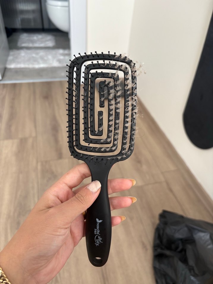 Tüm saç tipleri için uygun, esnek kıllara sahip dikdörtgen siyah saç fırçası, rahat tutuş sağlar.