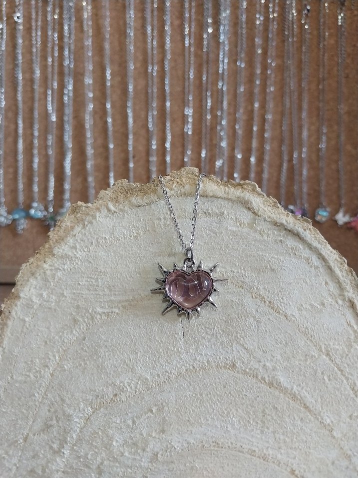pembe dikenli kalp kolye