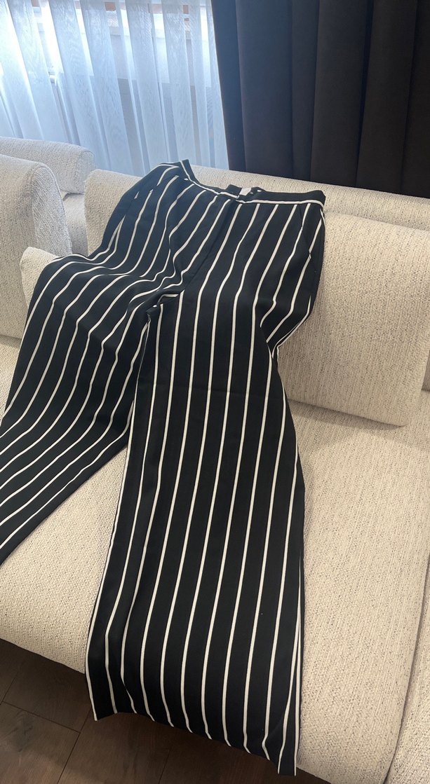 Dikine Çizgili Siyah Kadın Kumaş Pantolon