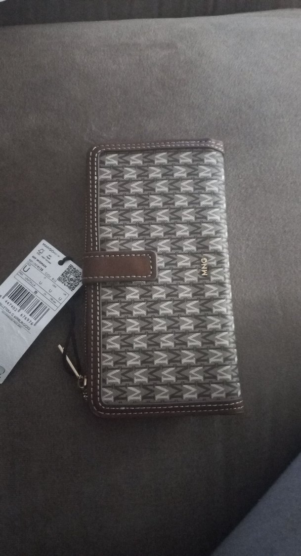 Gri ve kahverengi deri baskılı kadın cüzdan, fermuarlı bölme ve çıtçıtlı kapama ile günlük kullanıma uygun, sokak stili.sıfır fiyatı 1000 tl dir