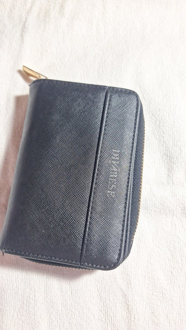Gündelik kullanıma uygun, baskılı dokuya sahip siyah deri kadın cüzdanı, fermuarlı kapanışlı ve trend sokak stiline uygun.