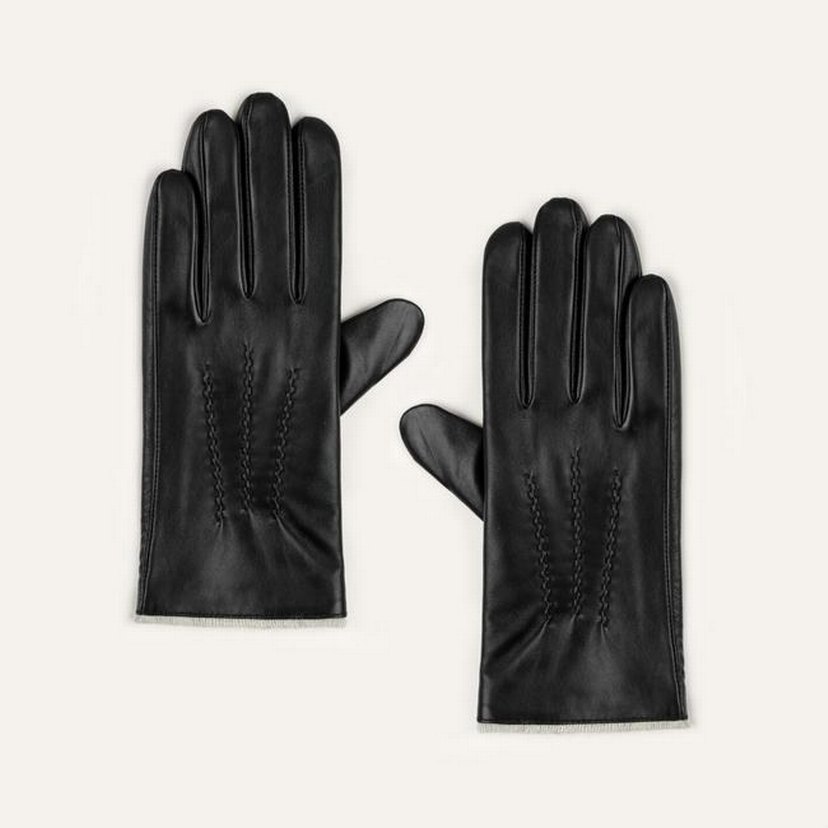 Dikiş Detaylı Siyah Deri Kadın Eldiven