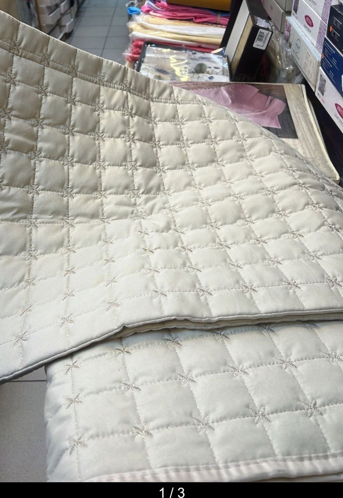 Dikişli kare desenli beyaz yatak örtüsü, sade ve şık bir görünüm sunar. tek kişilik bej rengi iki adet var