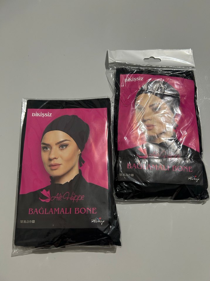 Yumuşak kumaştan yapılmış siyah dikişsiz bağlamalı bone, konforlu kullanım sağlar. Saçları güvenle kapatmak için uygundur.