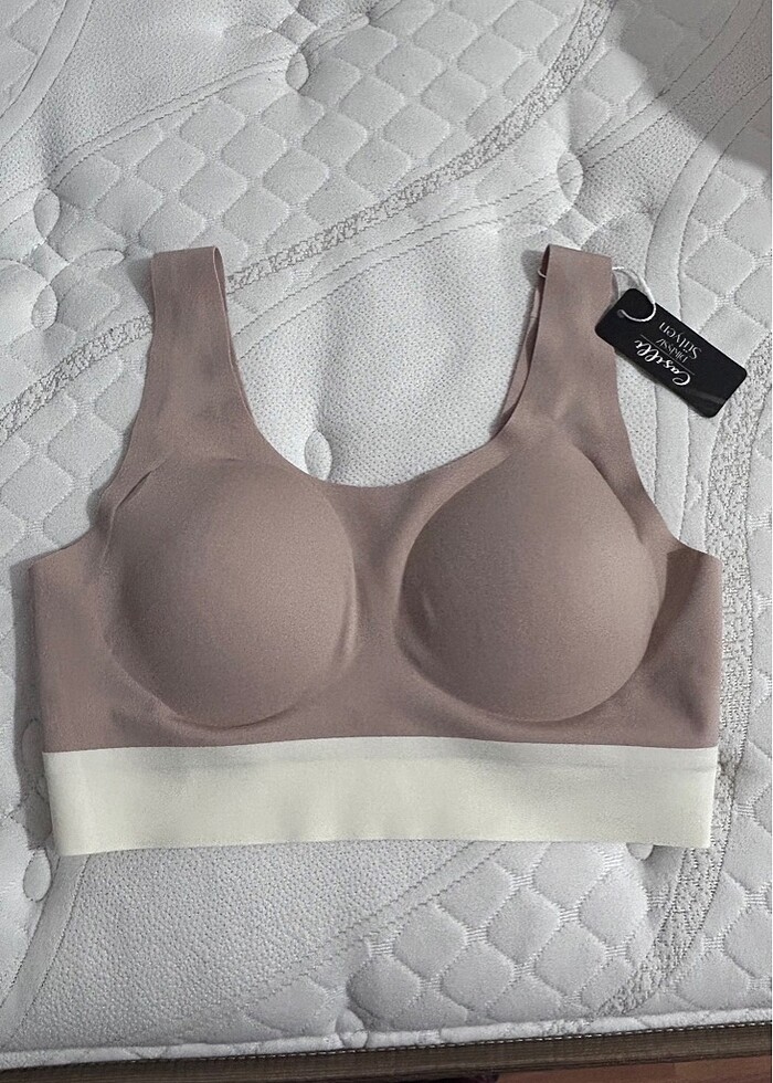 Dikişsiz büstiyer. Etiketli S/M beden. Pedleri çıkıyor. Göründüğü gibi gelecek