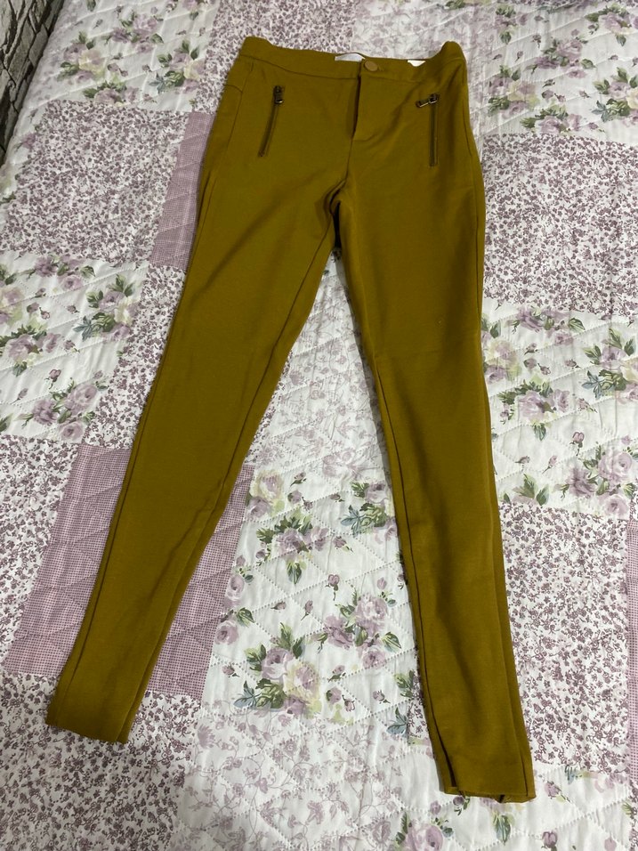 Kahverengi, dar kesim kadın kumaş pantolon, midi boy, fermuarlı ceplerle günlük sokak stiline uygun.