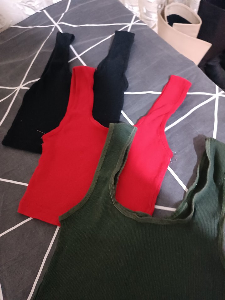 Dikişsiz kırmızı, yeşil,siyah midi straplez atlet, pürüzsüz sentetik kumaştan, günlük sokak stili için zahmetsiz şıklık sunar.