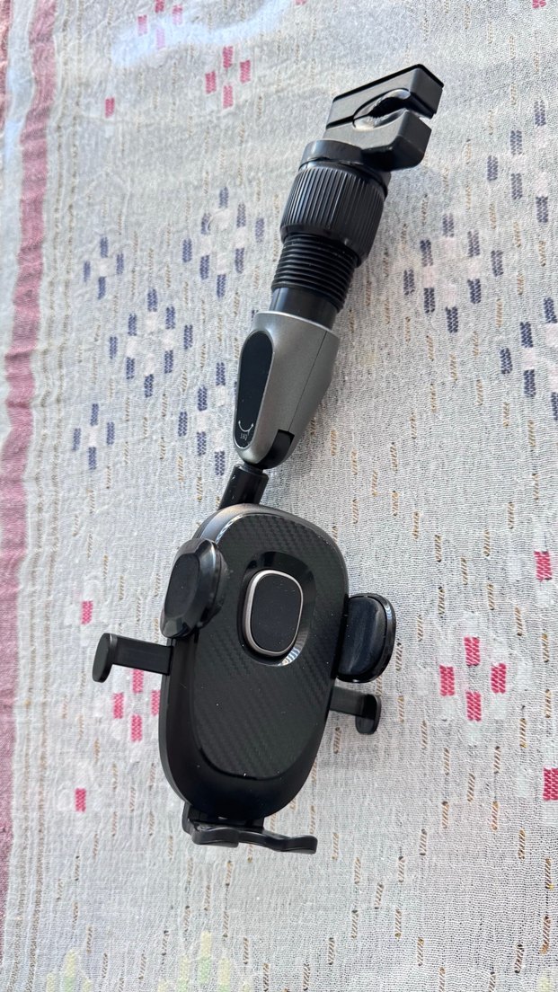 Dikiz Aynası Araç İçi Telefon Tutucu Ayarlanabilir kelepçe ve esnek kola sahip gri telefon tutucu. Farklı telefon boyutlarına uyumludur.