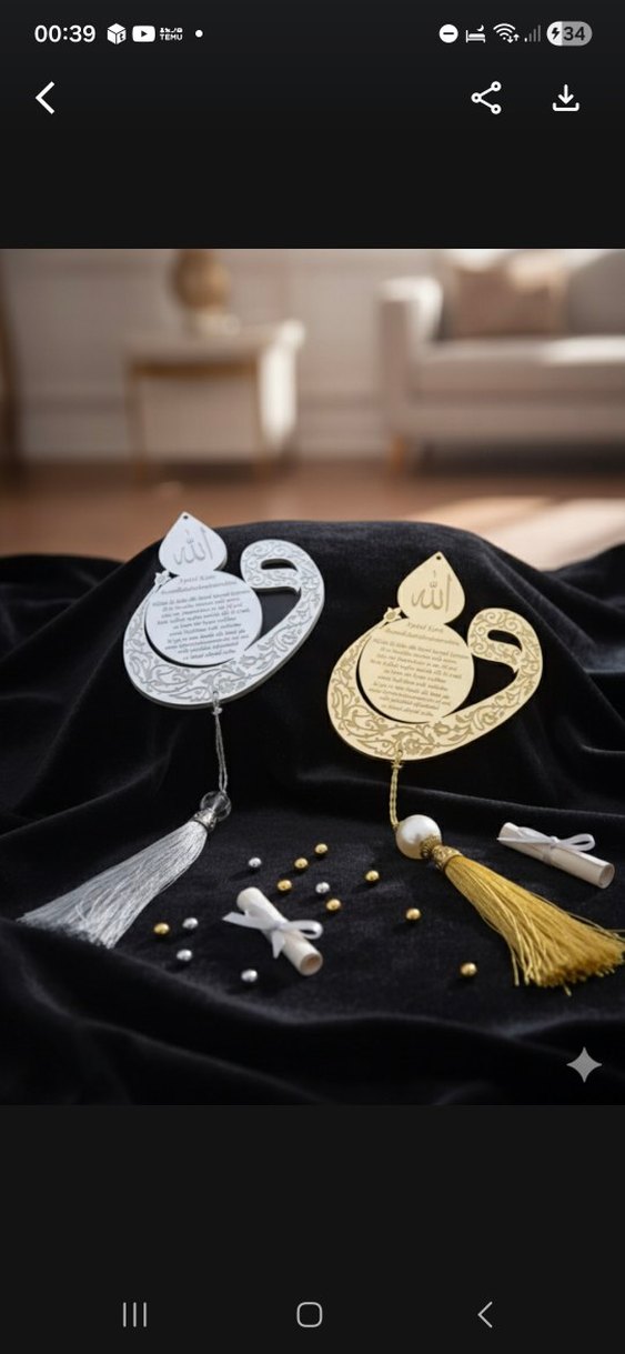 VAV desenli çift taraflı Ayetel Kürsi yazılı Altın ve Gümüş aynalı Pleksiden imal edilmiştir. Yükseklik 11cm - Genişlik 10 cm