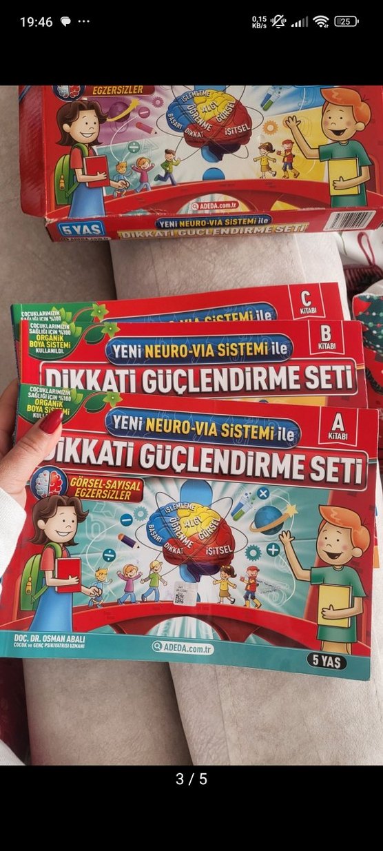 Yeni Neuro-Via sistemi ile 5 yaş çocuklar için dikkat güçlendirme seti. Görsel-sayısal egzersizler içeren A, B, C kitapları bulunur. kullanılmış
