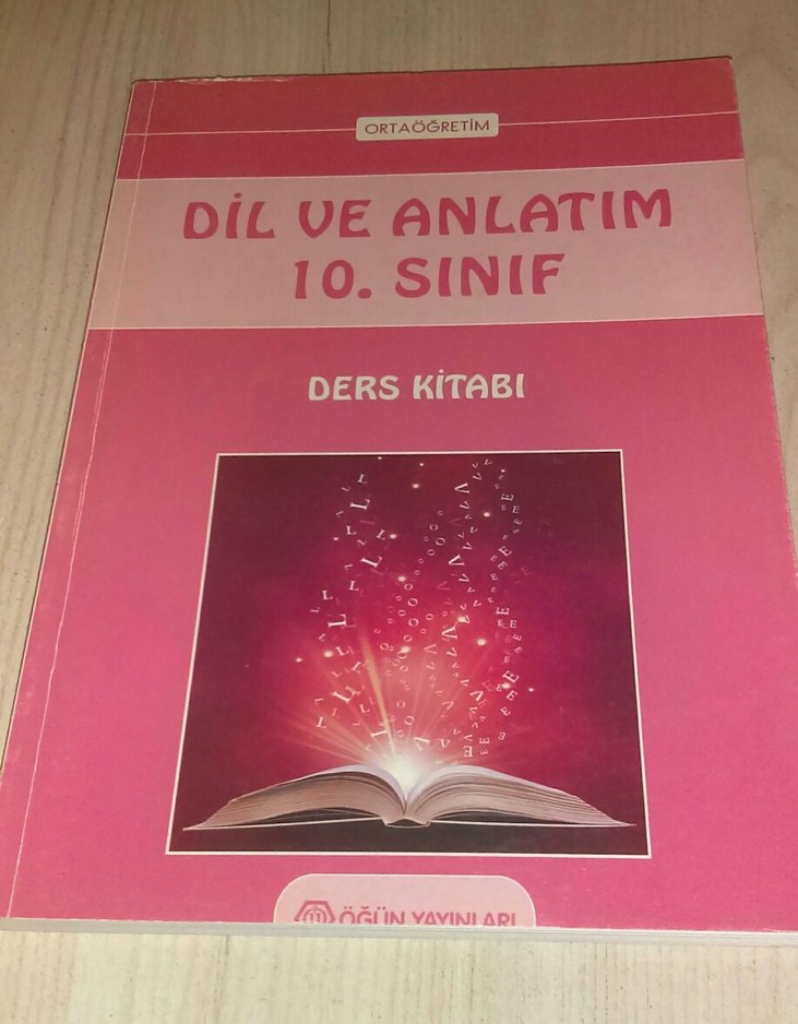Ortaöğretim için 10. sınıf dil ve anlatım ders kitabıdır. Kapağında açık bir kitap ve ışık saçan harfler yer alır.