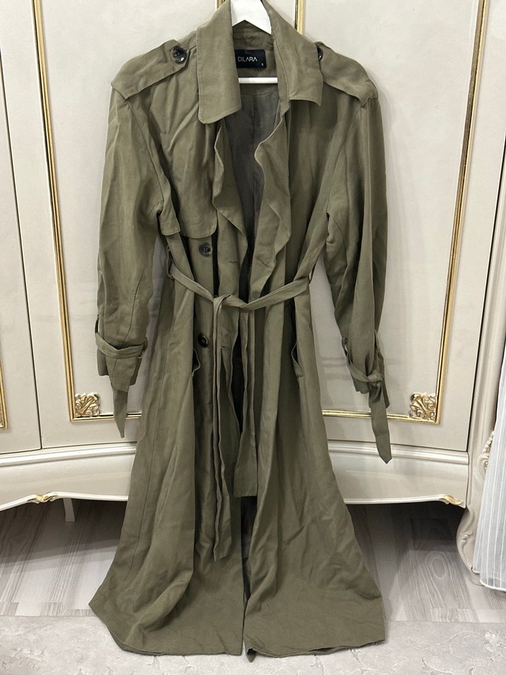 Dilara Nazan Ertan Kadın Keten Kumaş Kuşaklı Uzun Trençkot