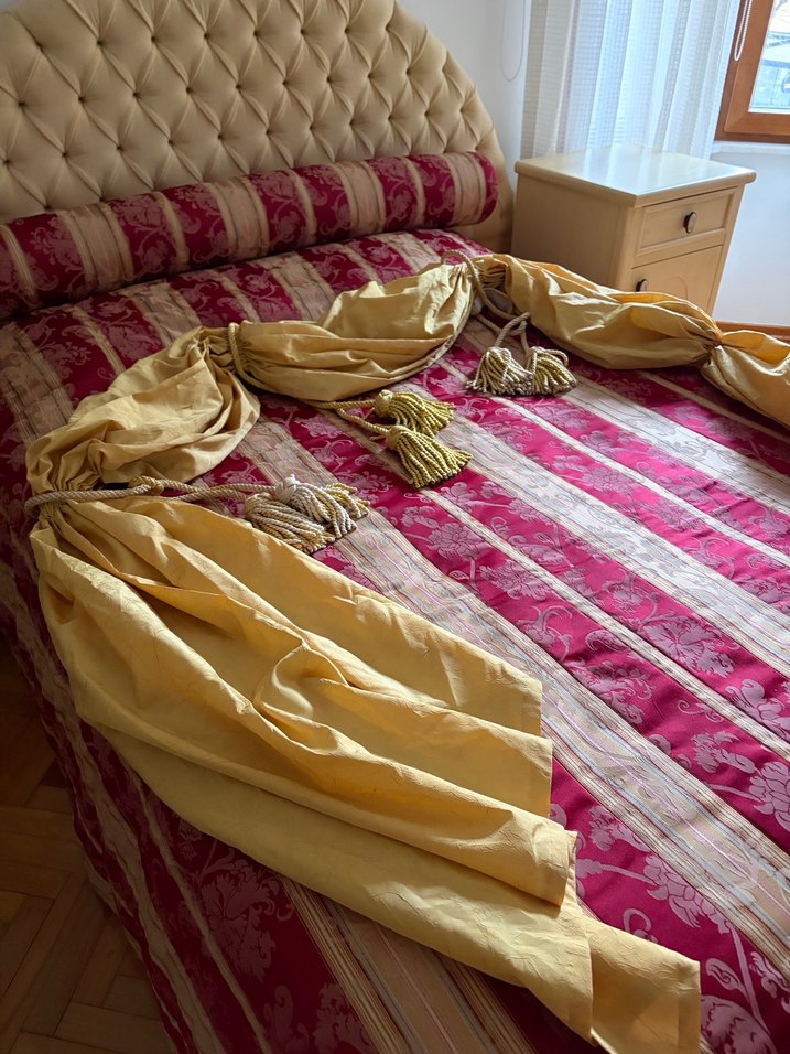 #Salon, #yatak #odası, #oturma #odası için uygun olabilecek #dilimli #perde, ince hışır hışır #parlak #sarı #taftayı andıran bir kumaştır ama daha ince yapıdadır astarı yoktur #asma #kordonları ile beraber gönderilecektir fakat kordonların iki tanesinde sanırım güneşten solma olmuş fiyata yansıtılmıştır kornişli perdeye uygundur üzerinde düğmeler mevcuttur takmaya hazırdır dikişi çok kalitelidir büzgülerinde herhangi bir sorun yoktur 4 #dilim ortada olacak şekilde genişlik 2,80, en uçlardaki dilimler ise aşağı doğru sarkacak şekilde asılacaktır onların da uzunluğu 93 cmdir