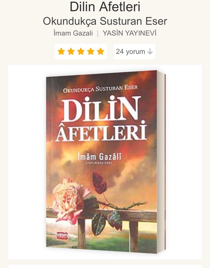 İmam Gazali'nin "Dilin Afetleri" adlı kitabı, Yasin Yayınevi tarafından yayımlanmış, dilin etkilerini ele alan düşündürücü bir eserdir.