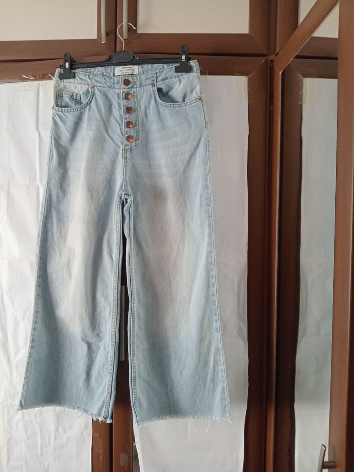 Dilvin marka 36 beden boru paça üğmeli, bol kesim mavi denim kot pantolon, pastel tonlu, günlük kullanıma uygun rahat tarzda.Boy 87 cm. bel 37 cm paça genişliği 27 cm olan arka tokalı ve ön düğmeli denim dilvin marka açık mavi üründür. Detaylar fotoda mevcuttur lütfen inceleyerek alım yapılması. #Denim #Dilvinmarka #bolpaça #36bdn Kadın