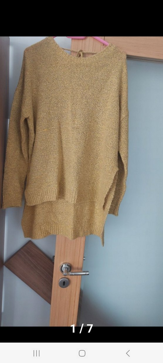 hardalrenkli, yumuşak yünden örülmüş kadın kazak. Salaş kesim, yuvarlak yaka ve uzun kollu. Günlük kullanıma uygun rahat ve konforlu midi uzunlukta. standart beden arka dekolte ve baglama detayli hardal renkte