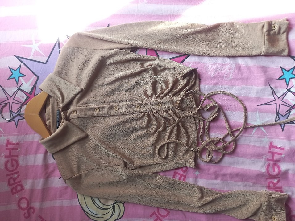 V yaka ve düğmeli önden bağlamalı, parlak sentetik kumaştan kahverengi, dar kesim kadın bluz, sokak modası ve vintage parti tarzına uygun. ✨