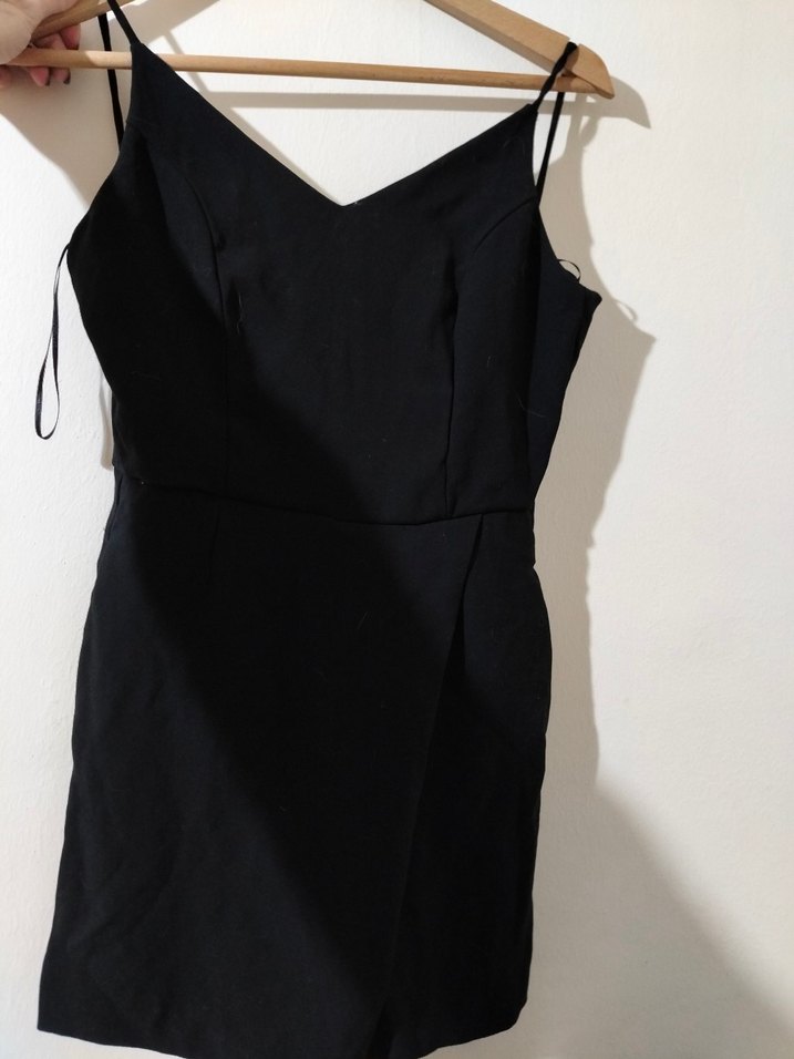 Bu siyah drapeli elbise, V yaka ve ince askılı. S beden ama bence xs gibi dar. Şort etek olduğu için rahat giyiliyor yazın.
