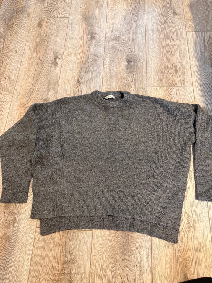 Gri renkli, yün örme kadın kazak, yuvarlak yaka ve uzun kolludur. Rahat kesimi ve normal boyu ile günlük kullanıma uygundur. Çok minik tüylenmesi vardır, makine ile temizlenir.
