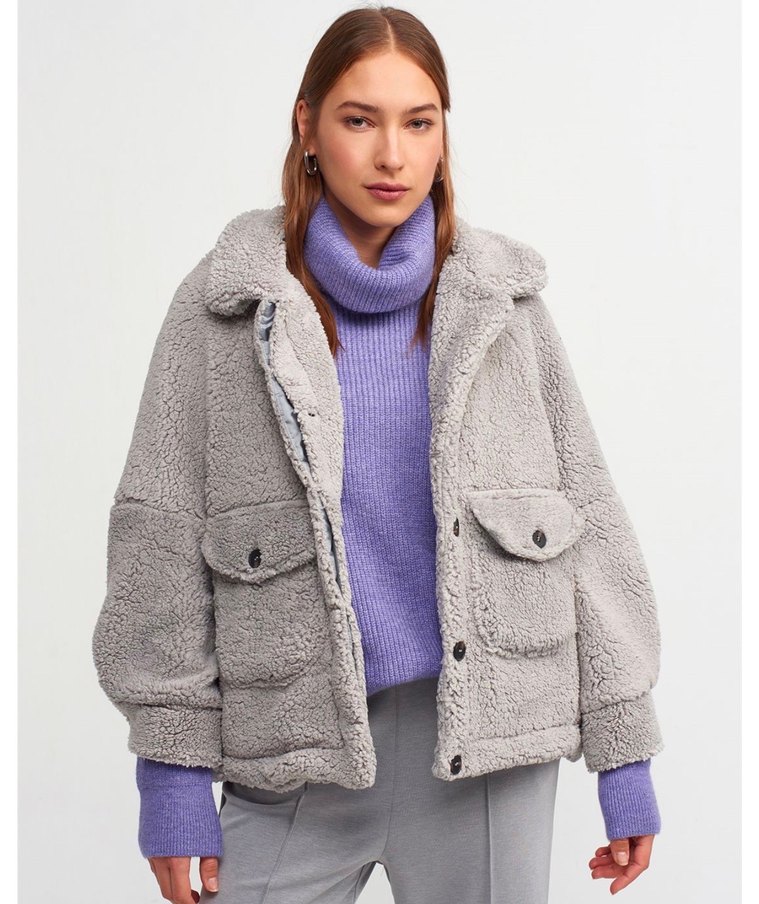 Dilvin Gri Kürklü Kadın Kışlık Mont