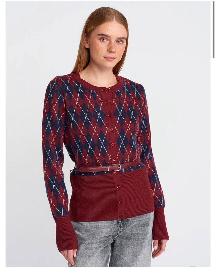 DİLVİN hırka düğmeli kemer detaylı standart beden