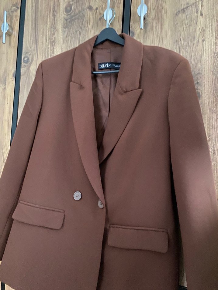 Dilvin Kadın Kahverengi Düğmeli Blazer