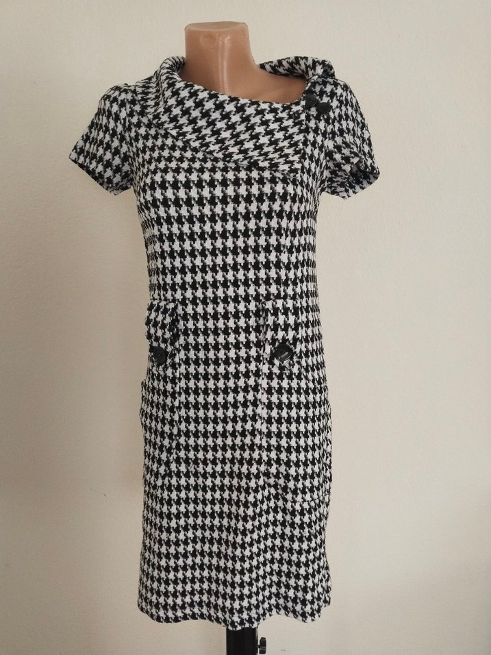 dilvin marka 38 beden renkli, kareli desenli midi elbise, tekne yaka ve kısa kolludur. Düğmeli ve rahat kesimlidir, günlük ve iş stiline uygundur. iki kol arası 52 cm boy uzunluğu 84 cm hiç etiketinde 40 beden yazıyor ama ölçülere göre M bedenine uyumludur