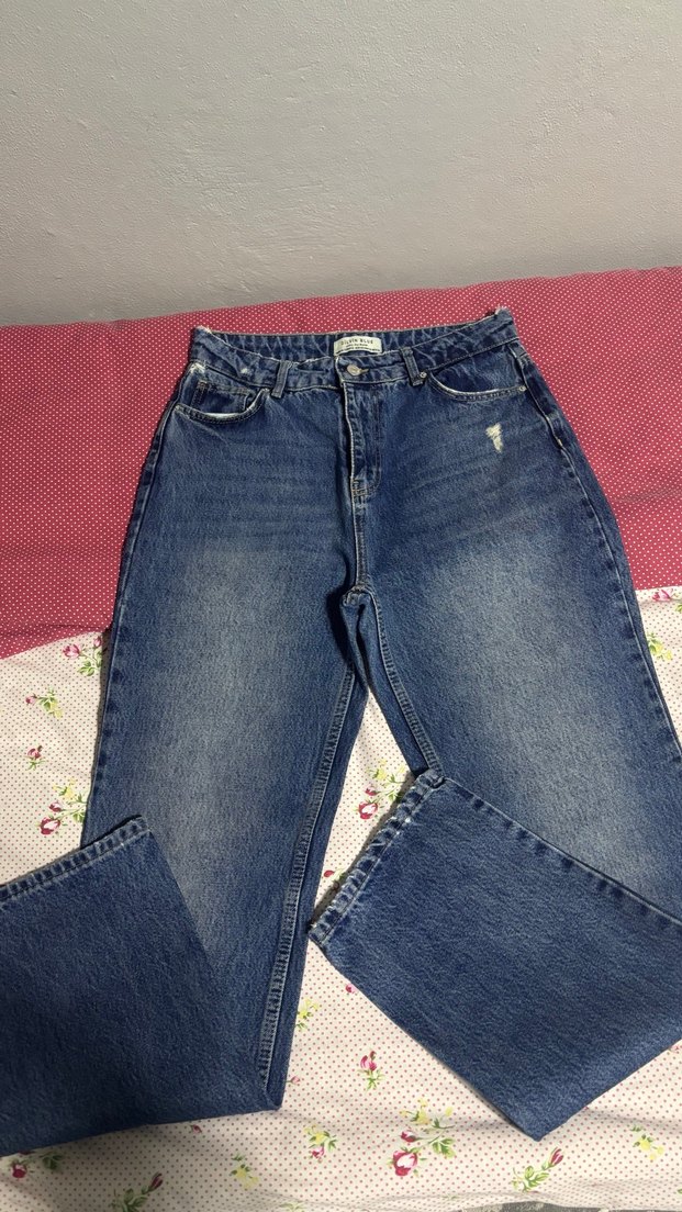 Dilvin eskitme detayli lacivert duz paca 40 beden pantolon bir kere giyildi sadece defosu ya da sorunu yoktur