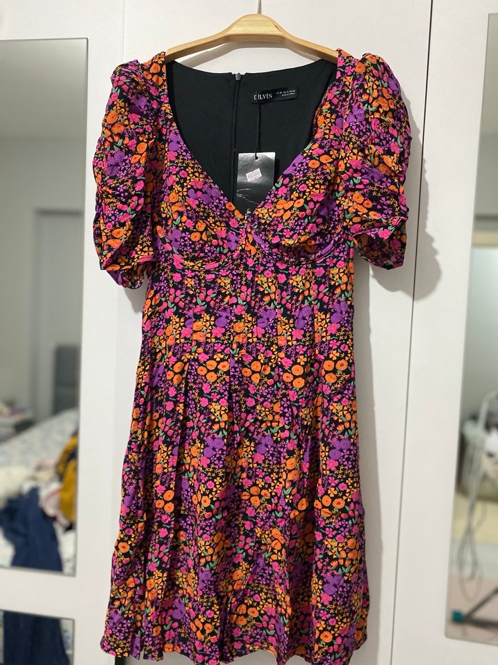 Dilvin Renkli Çiçekli Elbise