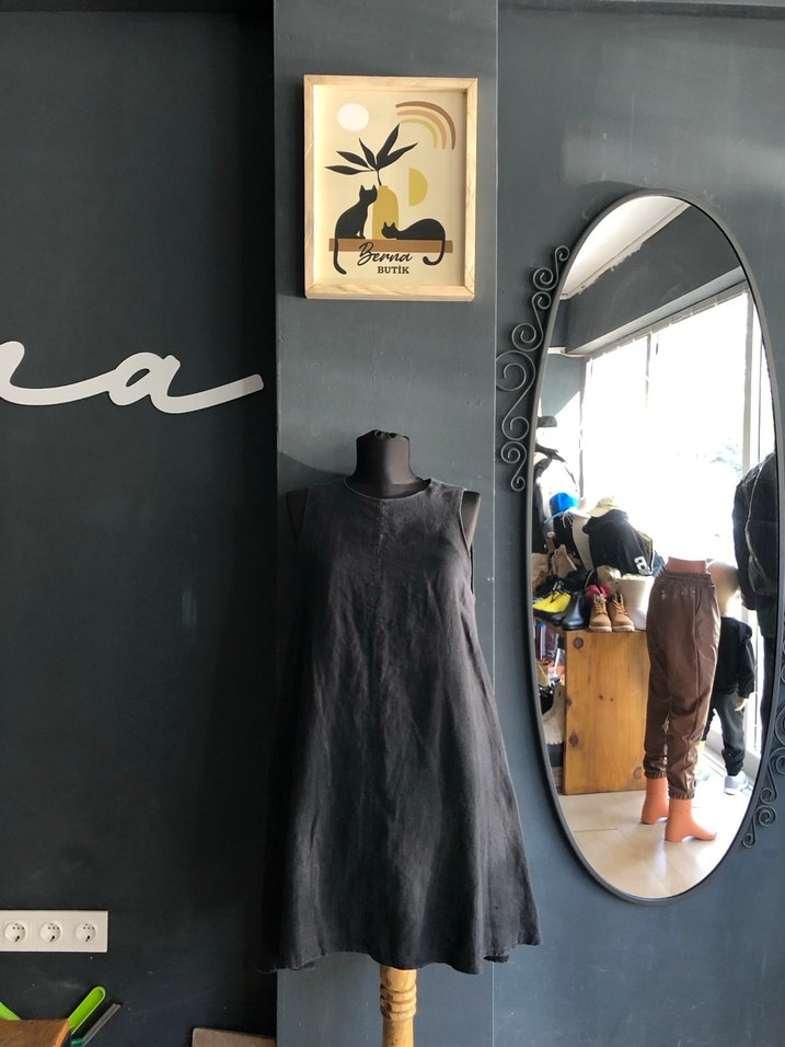 Dilvin Siyah Kolsuz Keten elbise 38 beden
