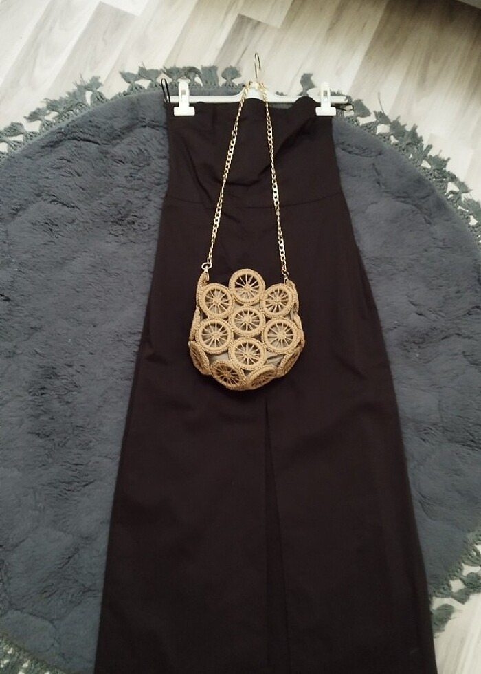 Elbise satrsplez kahverengi dilvin etiketli üründür önden yırtmaçlı dir çanta hasirbve içten aslarlidir Gold zincir islemelidir yeni ve etiketli üründür elbise l bedendir