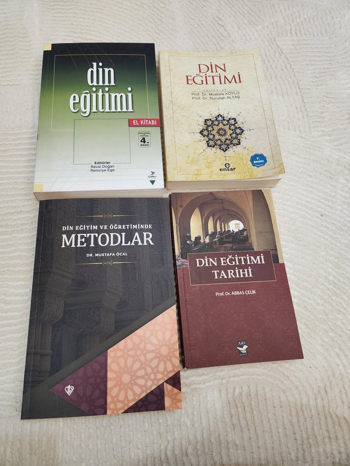 Din eğitimi, öğretim yöntemleri ve tarihi konularını içeren dört kitaplık set, el kitabı dahil. El kitabı hiç kullanılmadı