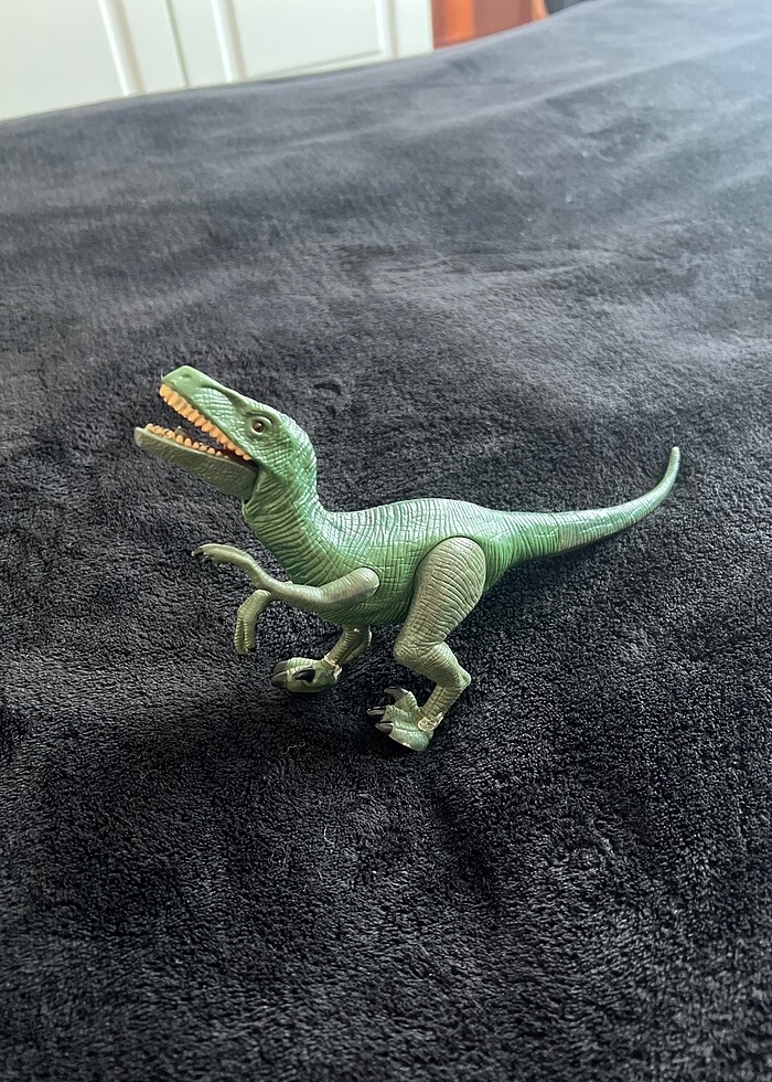 Küçük Saat pili ile çalışan, Gözleri ışık saçan SESLİ TREX DİNAZOR oyuncak. Eklemleri hareket ediyor. Sol kolunu oynatınca çenesini açıp kapatıyor. Yere düşürüldüğü için ayaklarında küçük çatlaklar oluşunca kırılmaması için önlem amaçlı kuvvetli yapıştırıcı sürdüm ve 3 senedir o şekilde kullanıyoruz hiçbir problem olmadı. Ne kırıldı ne bozuldu. Son fotoğrafta ekledim. Çocuklar büyüdüğü için satıyorum. Uygun fiyata bırakıyorum. AYNI ürün 600 TL ve üzeri fiyatlarda satılıyor. Alan kişiye yanında birde 10-15 cm büyüklüğünde robot şeklinde eklemleri oynayan dinazor hediye edeceğim.