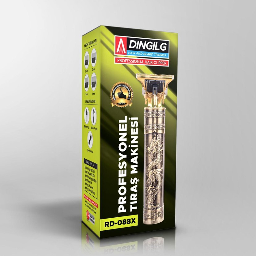 Dingilg RD-088X profesyonel tıraş makinesi, altın renkli ve detaylı tasarımlıdır. Renkli ve kaliteli bir tıraş deneyimi sunar. ✂️