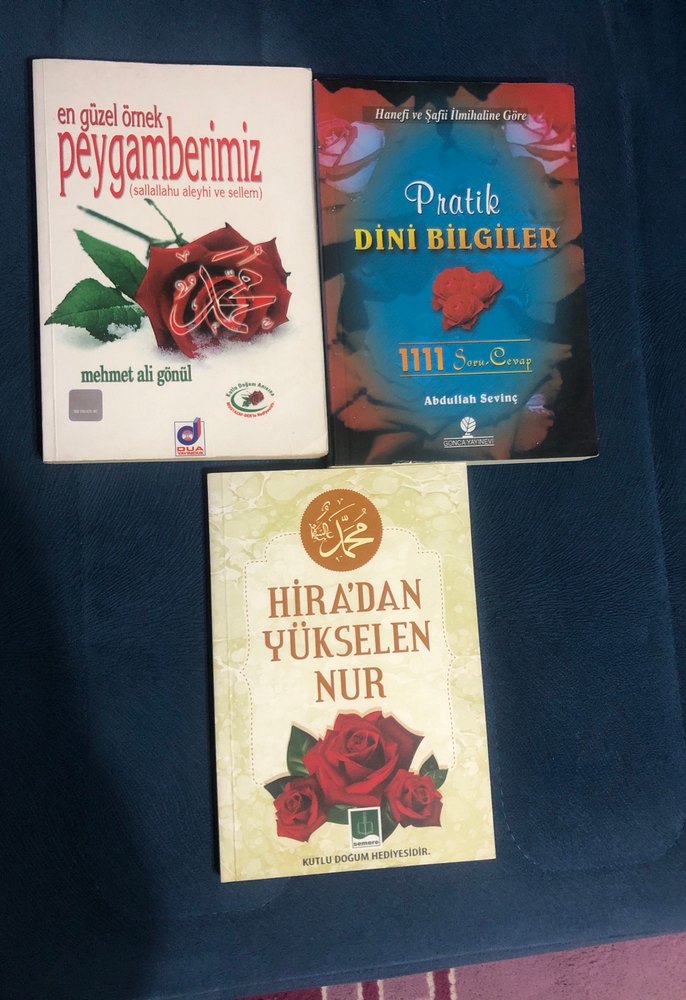 Mehmet Ali Gönül ve Abdallah Seving'in yazdığı dini bilgiler içeren üç kitap: Peygamberimiz, Pratik Dini Bilgiler ve Hira'dan Yükselen Nur.