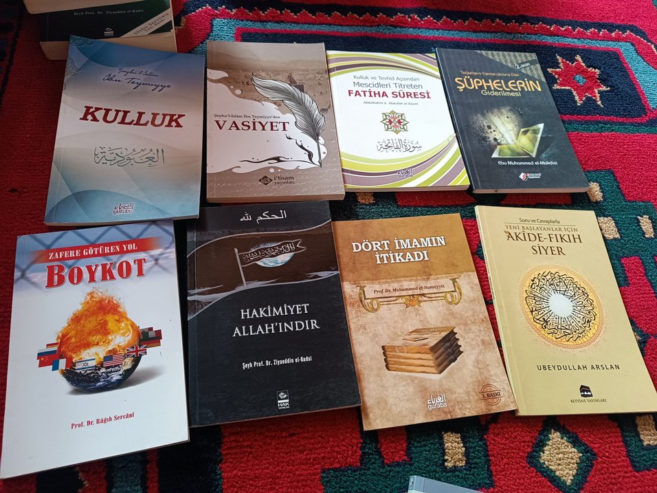 Vasıyet, Allah'ın hakimiyeti, dört imamın itikadı ve Fatiha suresi gibi dini konuları içeren kitap seti.