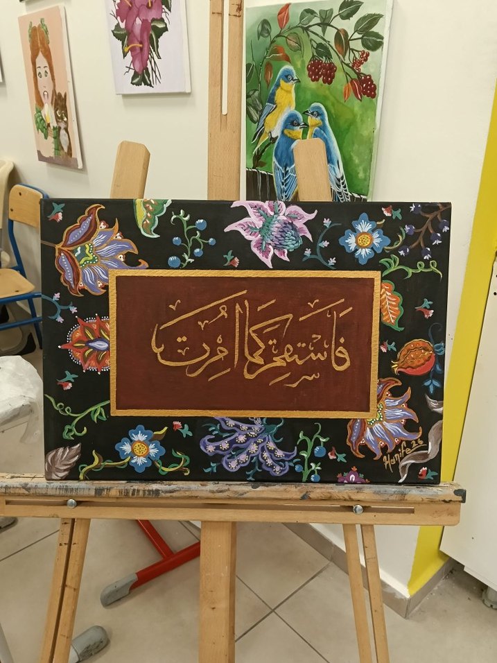 " Emrolunduğun gibi dosdoğru ol" ( Hud suresi 112.ayet) tuval üzerine akrilik boya çalışması 35x50 santim tamamen el emeği. diğer çalışmalarım için sayfama bakabilirsiniz. farklı resim siparişleri de alıyorum