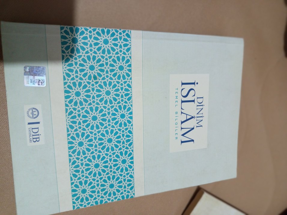 "Dinim İslam" kitabı, İslam ve dini bilgiler hakkında temel bilgileri içerir. Mavi beyaz desenli kapak tasarımı vardır.