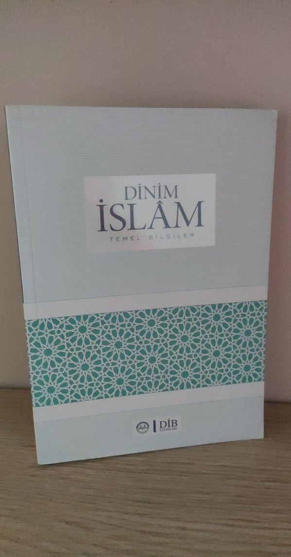 DİB yayınlı, İslam dini hakkında temel bilgileri içeren, sade desenli kapaklı bir kitap.